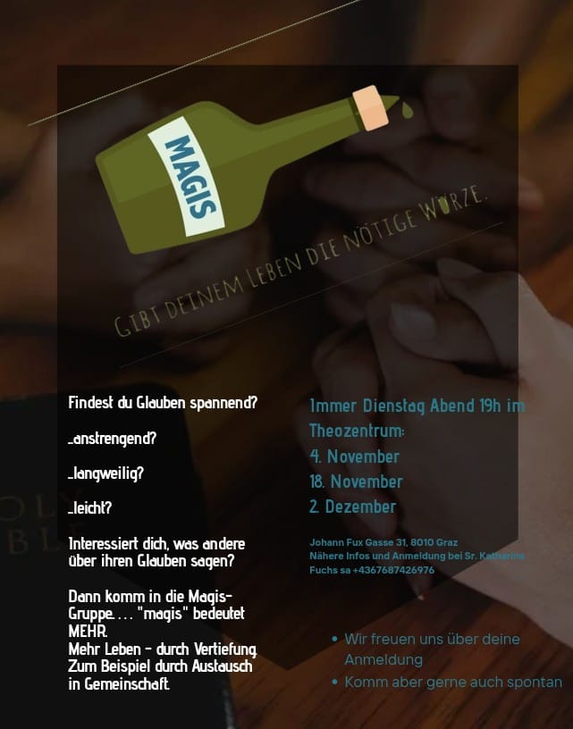 Nähere Infos und Anmeldung bei Sr. Katharina Fuchs sa ‪+4367687426976