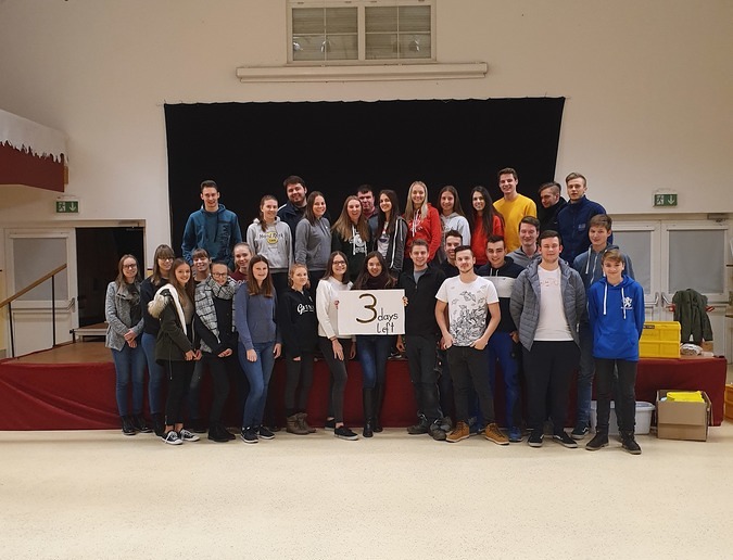 Nachdem wir heuer nur 3 Tage zum Aufbauen in der Wörther Kulturhalle hatten, beschlossen wir, die Deko schon im Dezember im Jugendraum anzufertigen. Dazu wurde an drei Tagen im Dezember fleißig gemalt, gespruht und geklebt. Am 29. Dezember war sie dann endlich fertig und wartete nur mehr auf ihren Einsatz.