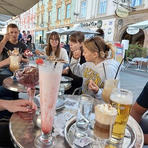 Die diesjährige Reise führte uns in die Obersteiermark, nach Eisenerz. Am Weg dorthin machten wir bereits einen Zwischenstopp in Spielberg, wo wir gleich einmal die Go-Kart-Bahn ausprobierten. Danach ging es weiter nach Eisenerz, wo wir unser eigenes Selbstversorgerhaus bezogen. Leider hatten wir etwas Pech mit dem Wetter und gestalteten unser Programm immer sehr spontan. Aufgrund des Wetters waren wir somit eher auf "Indoor-Aktivitäten" angewiesen. Wir besuchten direkt in Eisenerz ein Gesteinsmuseum, sowie das Ortsmuseum, den Erzberg (inklusive Hauly-Fahrt), das Hallenbad und einen schönen Nachmittag verbrachten wir auch am Leopoldsteinersee. An einem Tag waren wir in der zweitgrößten Stadt der Steiermark - in Leoben. Wir besuchten die Gösser Brauerei und flanierten durch die Innenstadt. Am Ende unserer Reise machten wir auch noch einen kleinen Abstecher in das Stift Admont.
