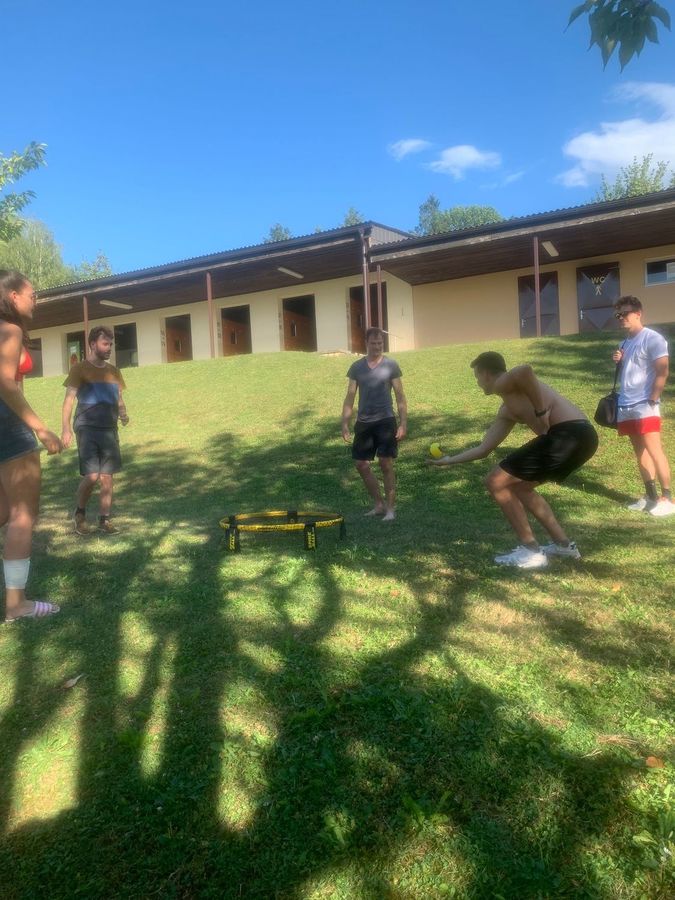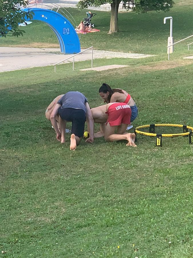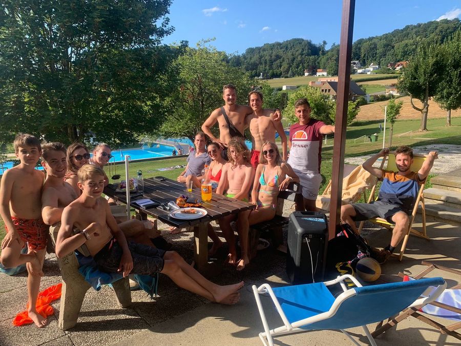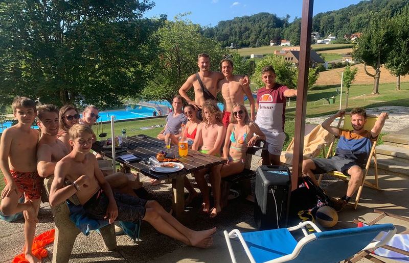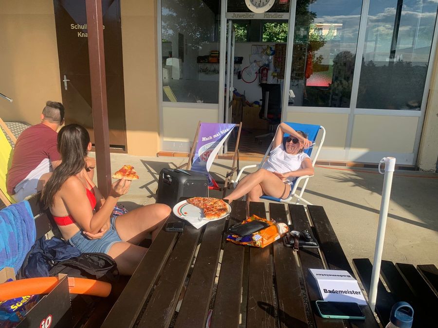 Am letzen Tag im Juli 2022 beschlossen wir uns einen gemütlichen Sonntagnachmittag im Freibad Gnas zu machen. Es wurde nicht nur im Bad abgekühlt, sondern in entspannter Atmosphäre getratscht, Spikeball gespielt und schließlich auch das Finale der Damen-Fußball-EM angeschaut. Das Wetter spielte perfekt mit und wir freuten uns über viele Mitglieder der KJ, die vorbeischauten. Mit dabei war auch unser Lieblingsbademeister "Hasi".