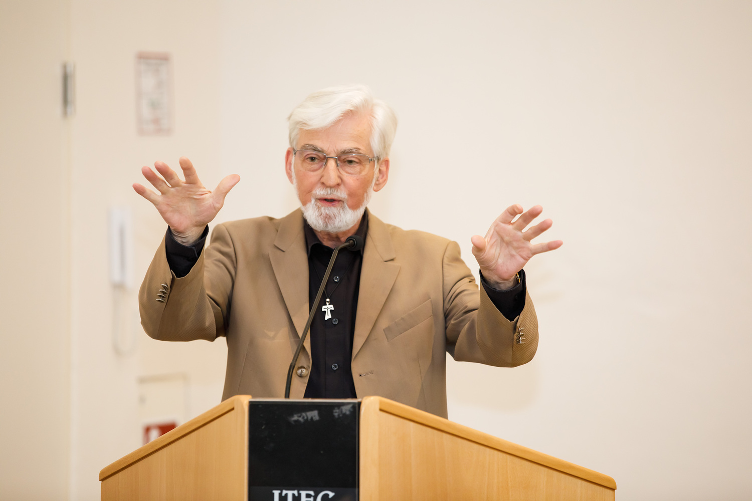 Als thematische Hinführung gab der Dechantskirchner Pfarrer Wolfgang Fank, bekannt durch sein Engagement für Schöpfungsverantwortung und vielfacher Preisträger, den Zuhörenden "Zund" mit seiner eindringlichen Analyse der weltweiten Situation. Ruhig und präzise schilderte er die zahlreichen Fehlentwicklungen und nahm sowohl die politisch Verantwortlichen, als auch die Medien und die gesamte Bevölkerung in die Pflicht. Drei zentrale Forderungen gab er uns mit auf den Weg: