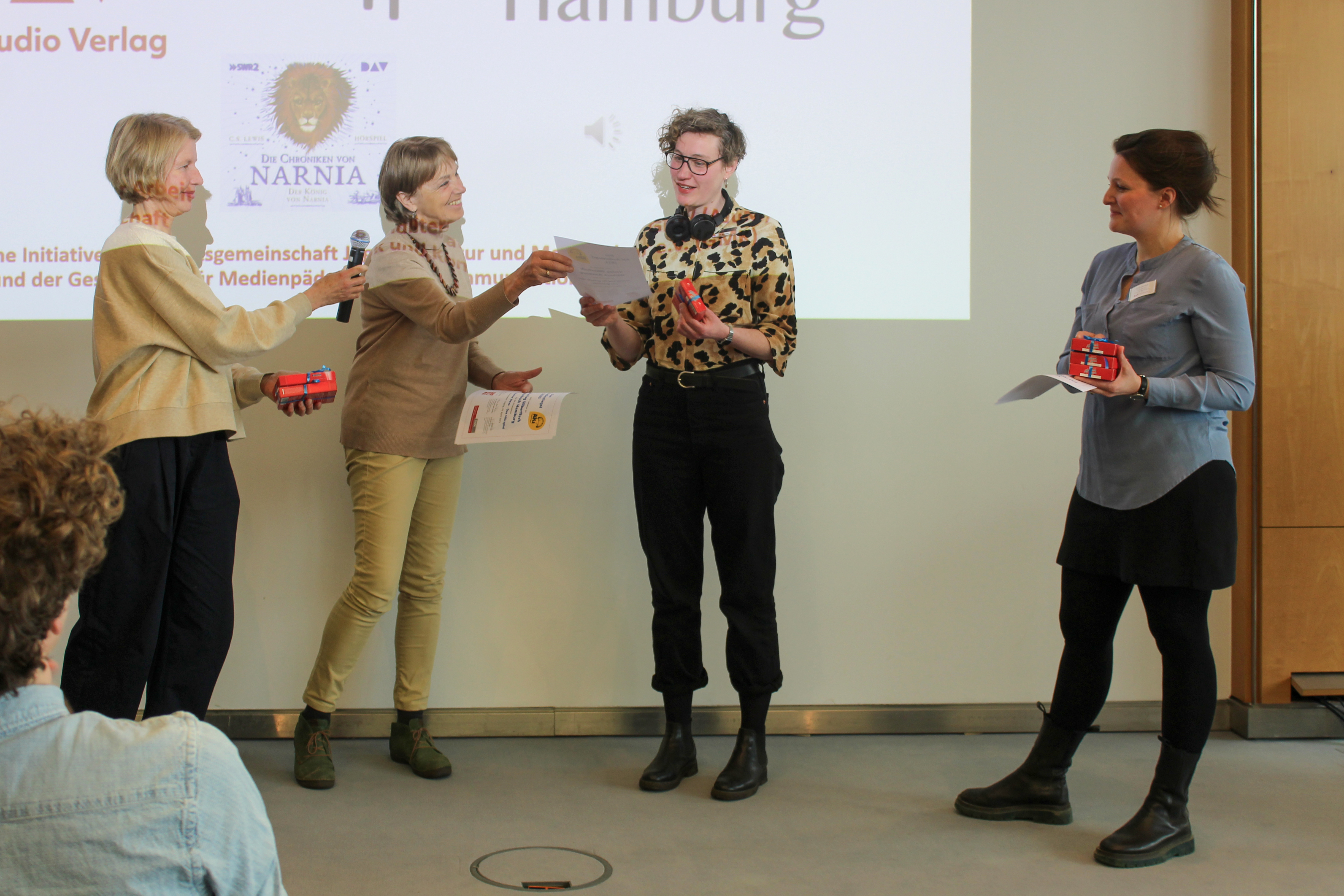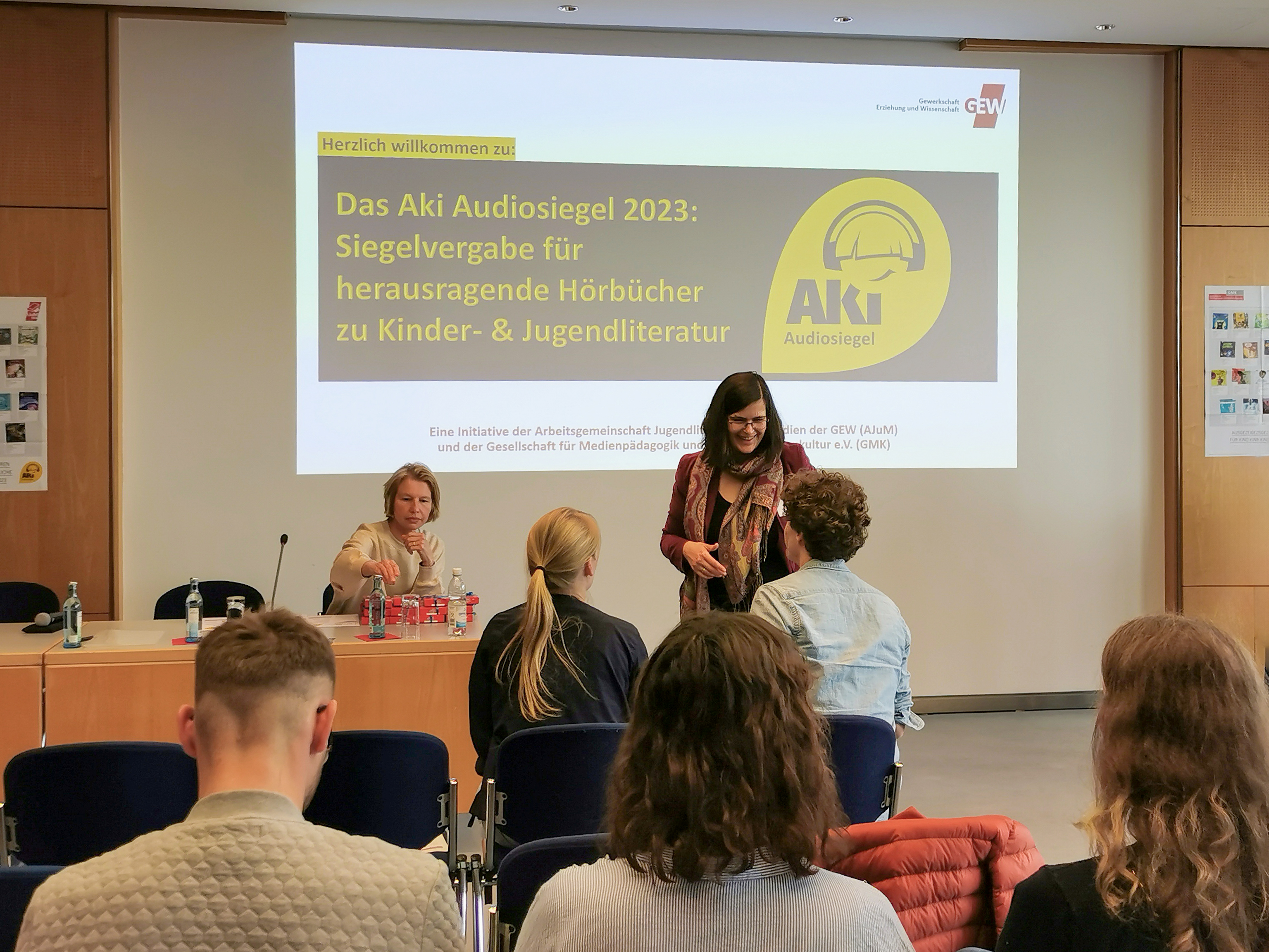 Einen zweiten Grund gab es auch für diese Reise. Als einziges österreichisches Mitglied der internationalen Hörbuch-Jury für das Kinder-Hörbuch-Gütesiegel konnte ich im Rahmen der Feier im Congress Center auf der Buchmesse am 28.4. das Gütesiegel AKI für Kinder von 3 – 13 Jahren an ausgezeichnete Verlage überreichen.
