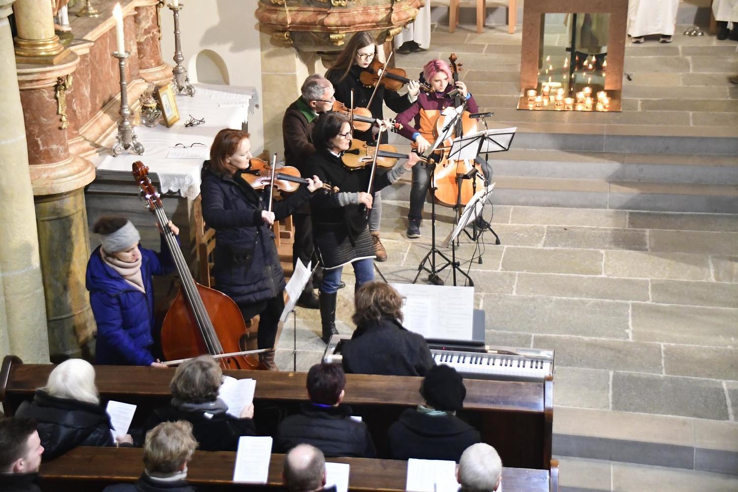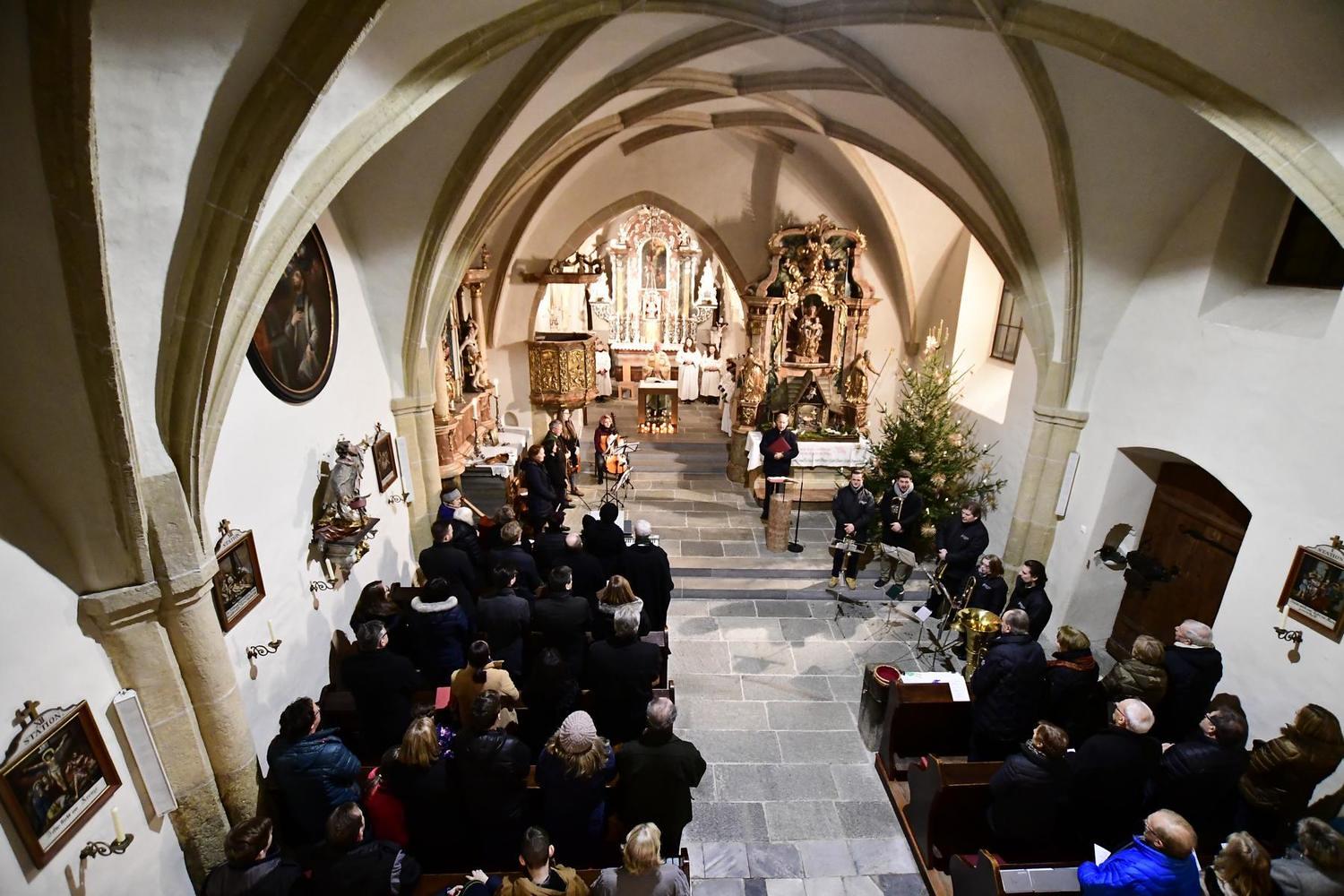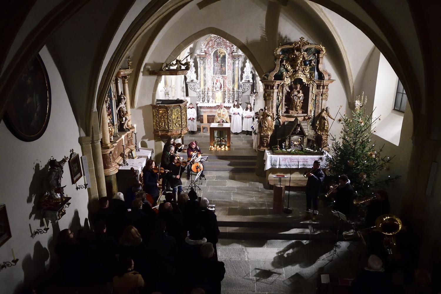 Am 24. Dezember wurde auf dem Kirchberg in Deutschfeistritz um 23.00 Uhr die Christmette gefeiert. Professor Mag. Helmut Schlacher als Zelebrant freute sich über die große Zahl an Kirchenbesuchern. Familie Härtel sang schon eine halbe Stunde vor Beginn des Gottesdienstes mit der ganzen Kirchengemeinde Hirten- und Krippenlieder. Inge Härtel übte für den Festgottesdienst ein vielstimmiges Gloria und ein Alleluja ein, an dem sich alle mit Freude beteiligten. Auch das Orchester und die Bläsergruppe musizierten mit großer Begeisterung. Die mit Sorgfalt ausgewählten Texte trugen zu einer besonderen Stimmung bei. So wurde die Mette sowohl musikalisch als auch spirituell zu einem Gemeinschaftserlebnis.