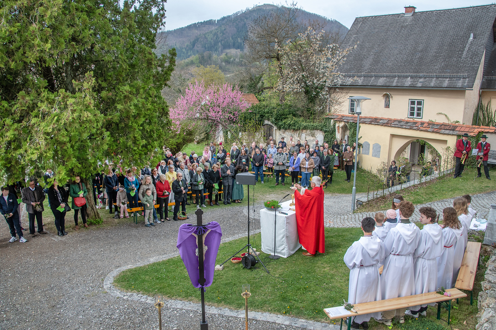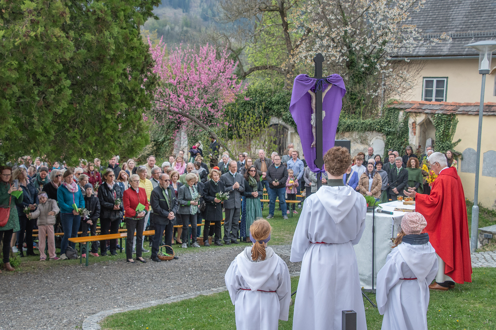 Bei angenehmen Temperaturen fand die alljährliche Palmweihe im Kirchhof zelebriert von Professor Schlacher vor einer großen Anzahl von Gläubigen statt. Musikalisch umrahmt wurde die Feier von einer Abordnung des Musikvereins, die Passion sang der Ministrantenchor.