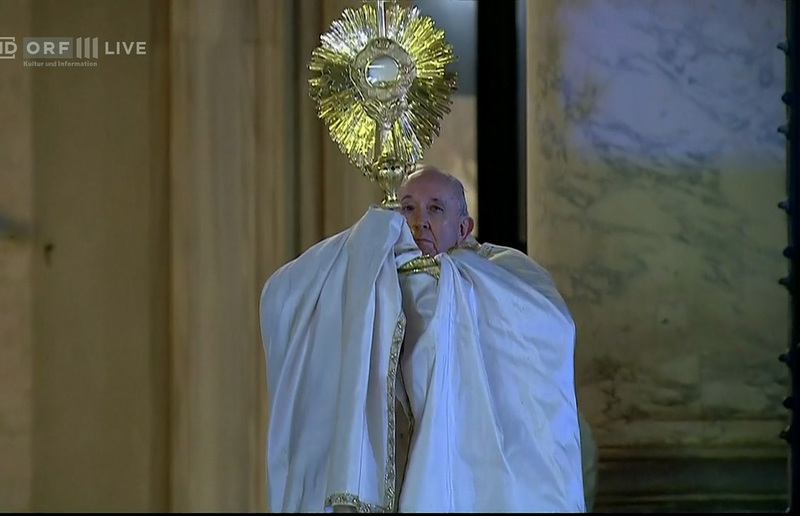 Am Freitagabend erteilte Papst Franziskus im Rahmen einer Andacht auf dem für Besucher gesperrten Petersplatz den Segen „Urbi et Orbi“, den feierlichsten Segen der katholischen Kirche. Mit ihm verbunden ist ein Ablass, eine Tilgung von Strafen, wie sie katholischen Gläubigen unter anderem in der Sterbestunde gewährt wird.