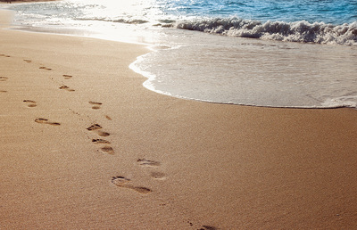 Und jedes Mal sah ich zwei Fußspuren im Sand,