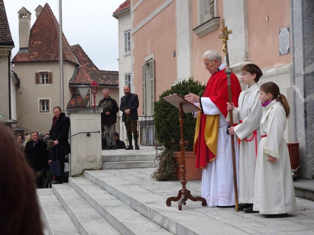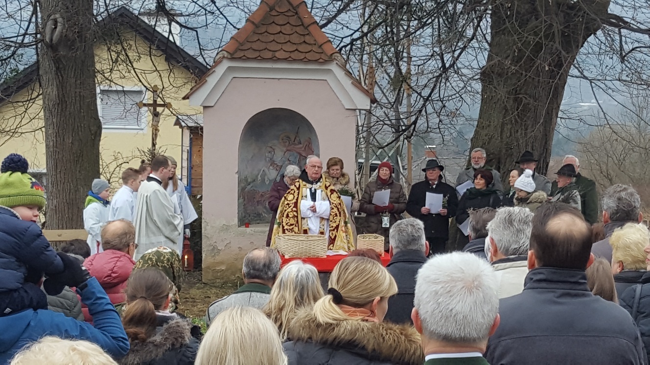 Am Palmsonntag fanden um 8.30 Uhr die Palmweihen durch Pater Dominikus in Adriach beim St.-Georgs-Bildstock mit anschließender Prozession zur ehrwürdigen St.-Georgs-Kirche und hl. Messe sowie durch Pater Simon vor der Pfarrkirche mit Prozession um die Mariensäule und Eucharistiefeier in der Kirche statt. Dabei wurden auch Ölzweige an die Gläubigen verteilt, die trotz kalter Witterung und Umstellung auf die Sommerzeit recht zahlreich erschienen sind.
