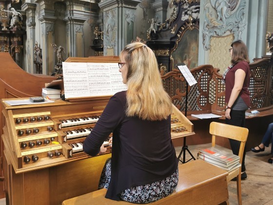 Weiters sangen zur Gabenbereitung unsere Sopranistinnen Eva Heißmann-Zabini und Lena Zabini das berührende Duett „Ich harrete des Herrn“ aus Mendelssohns „Lobgesang“ mit Begleitung des Ensembles und Miriam Ahrer an der Orgel. Zur Kommunion sang unsere Altistin Verena Waidacher das berühmte „Ave Maria“ von Franz Schubert. Mit dieser schönen Kirchenmusik konnten wir das Hochamt trotz der schwierigen Umstände sehr feierlich gestalten!