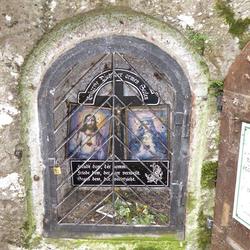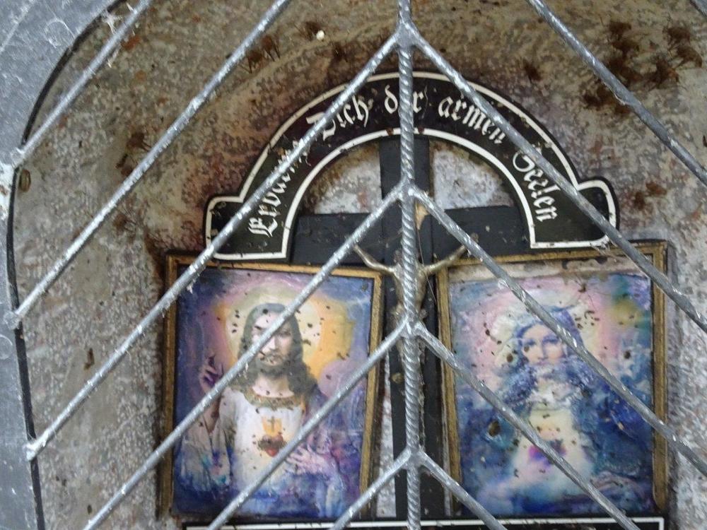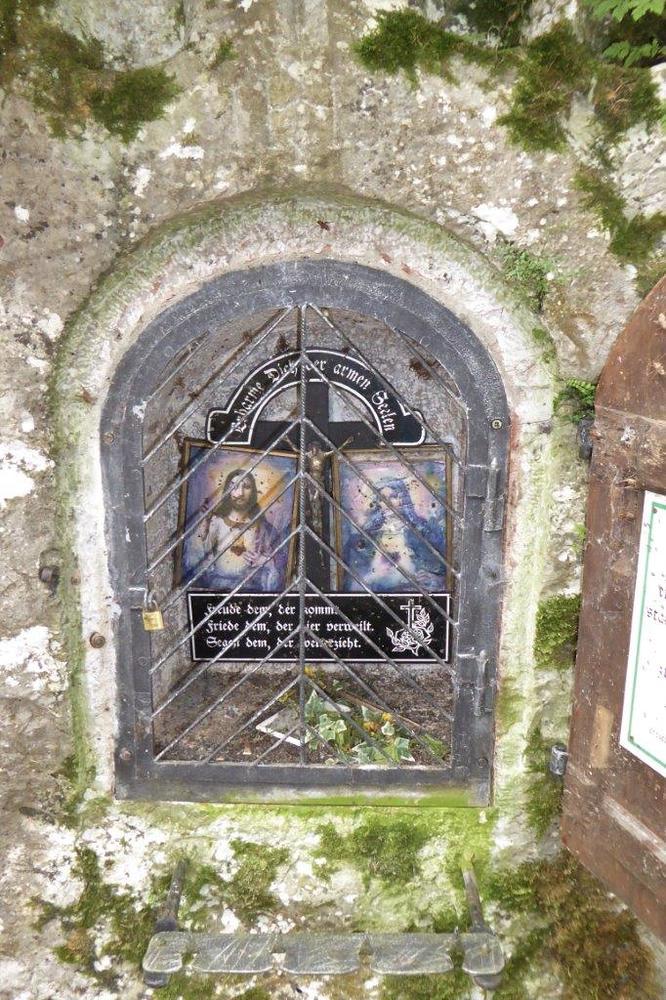 Über diesem ist ein halbrundes Schild mit dem Wortlaut: „Erbarme Dich der armen Seelen!“ befestigt.