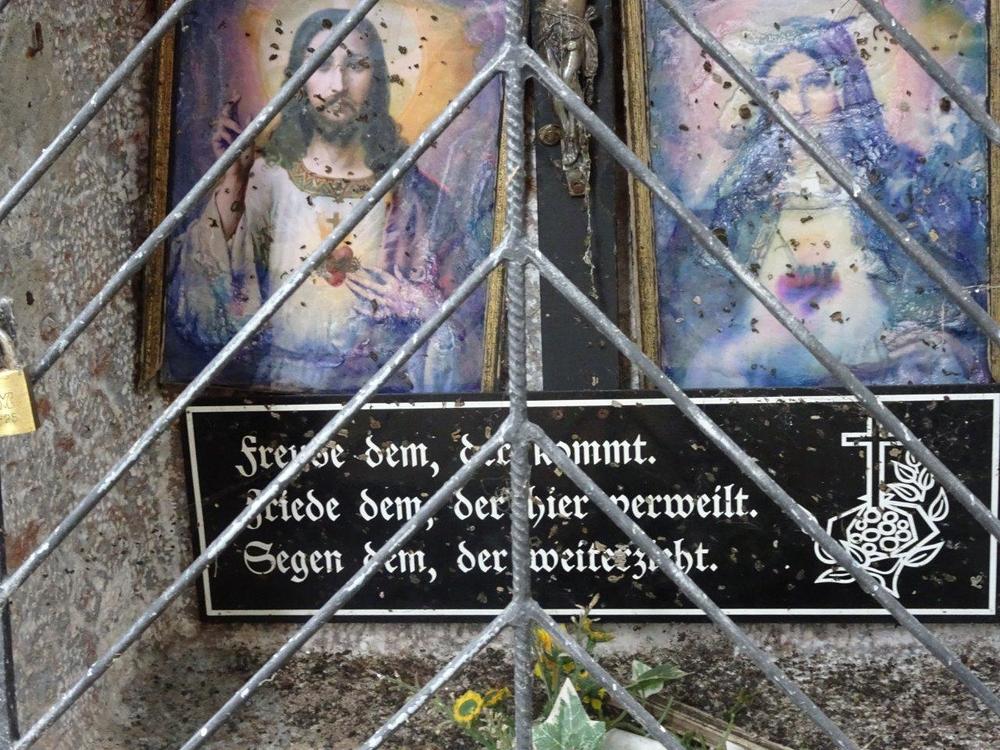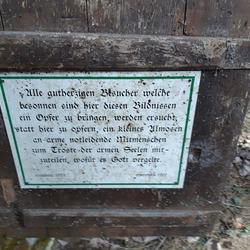 „Alle gutherzigen Besucher, welche besonnen sind, hier diesen Bildnissen ein Opfer zu bringen, werden ersucht, statt hier zu opfern, ein kleines Almosen an arme notleidende Mitmenschen zum Troste der armen Seelen mitzuteilen, wofür es Gott vergelte.“