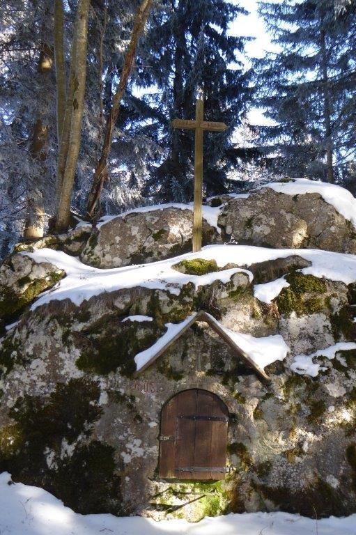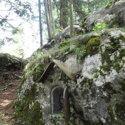 Am Rande einer Waldwiese des Anwesens Zöhrer vlg. Felber in ca. 1.150 m Seehöhe und abseits des Wanderweges 531 steht auf einem Felsbrocken ein sehr schönes, aber eher unbekanntes Zeichen des Glaubens: das Schiffall-Kreuz.