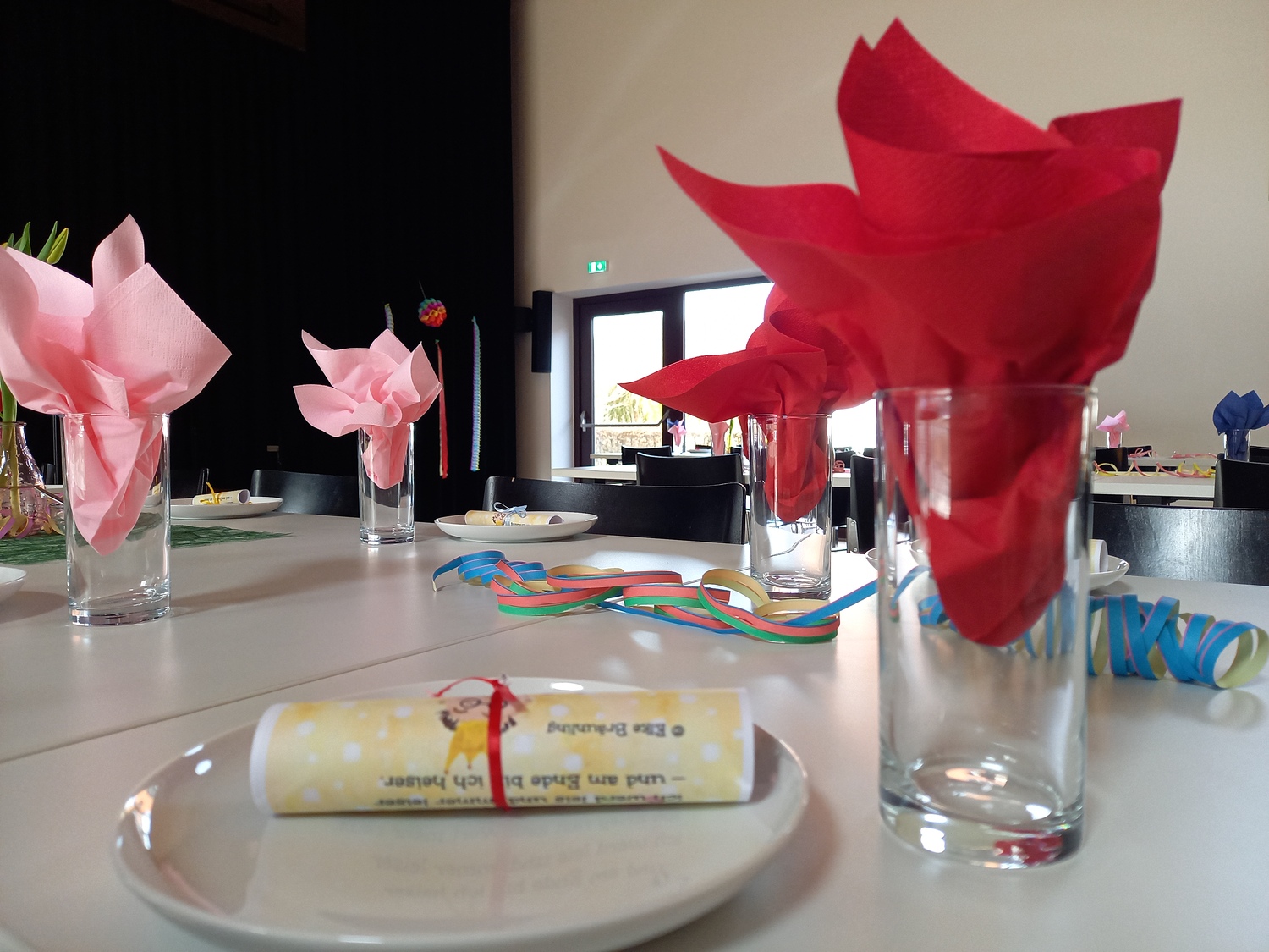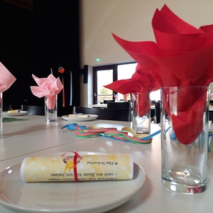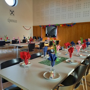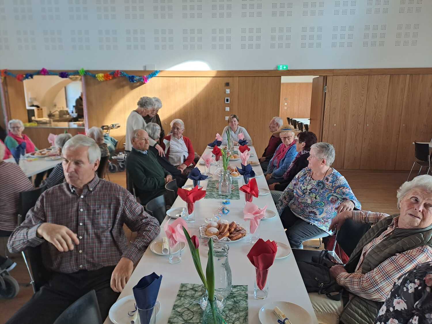 Die fleißigen Hände vom Pfarrgemeinderat und unserem Team des Be­geg­nungs­nach­mit­tags haben den Saal wunderbar geschmückt und ei­ni­ge haben Krapfen und Strauben für die Besucher gebacken.