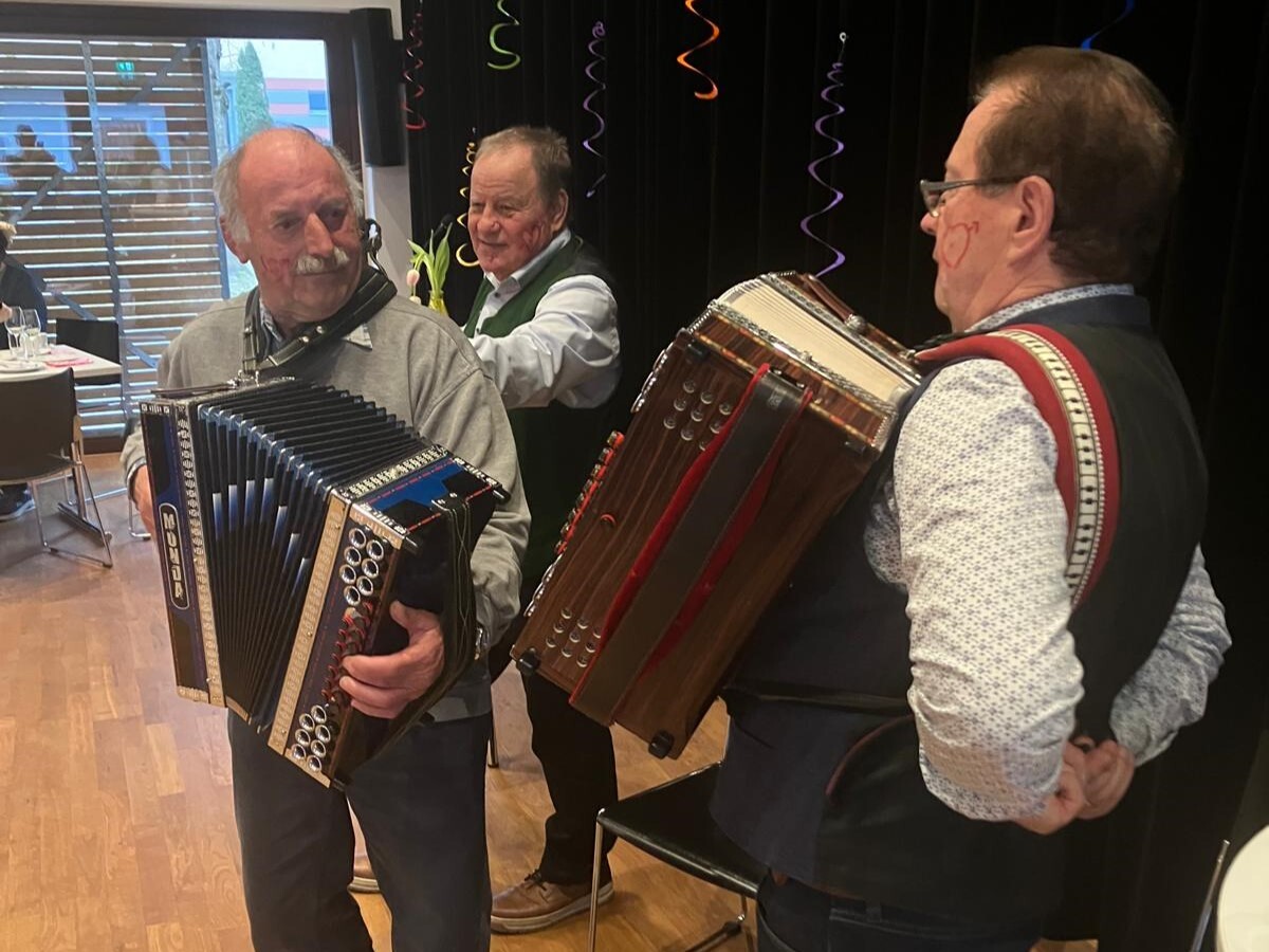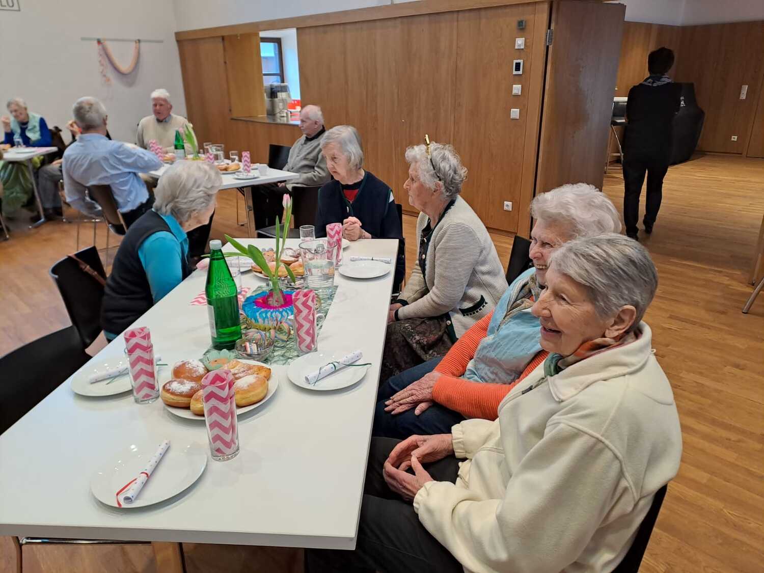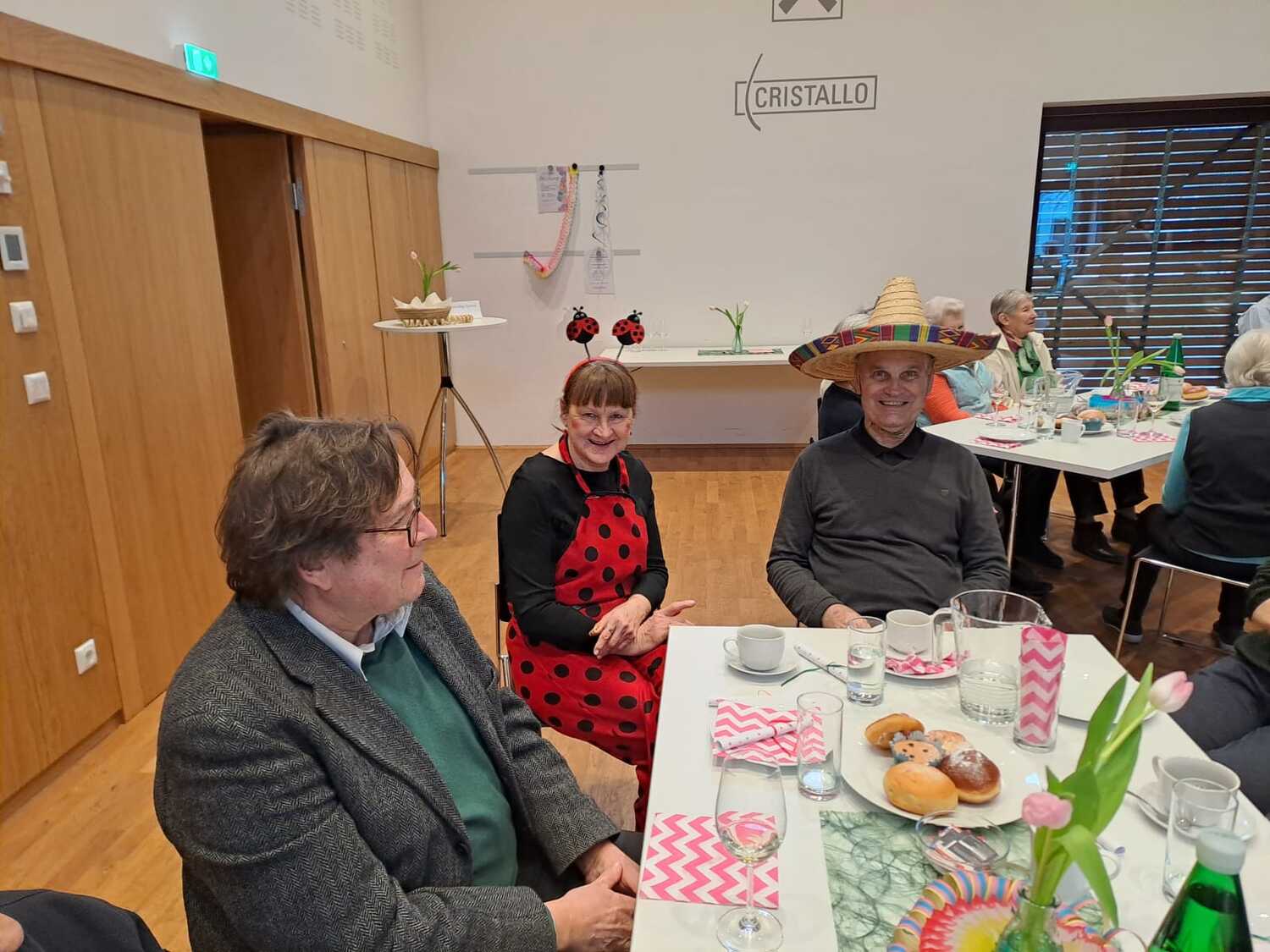 Bei Krapfen, Kaffee und einem guten Glaserl Wein war die Stimmung fantastisch. Für die musikalische Umrahmung des Programms, sowie für Tanzmusik sorgten Mori Hans und Karl Tschernko auf ihrer Steirischen. Bei Schunkelliedern und steirischen Gesängen machten die Besucher:innen fleißig mit.