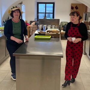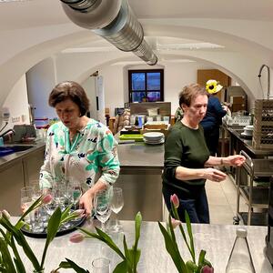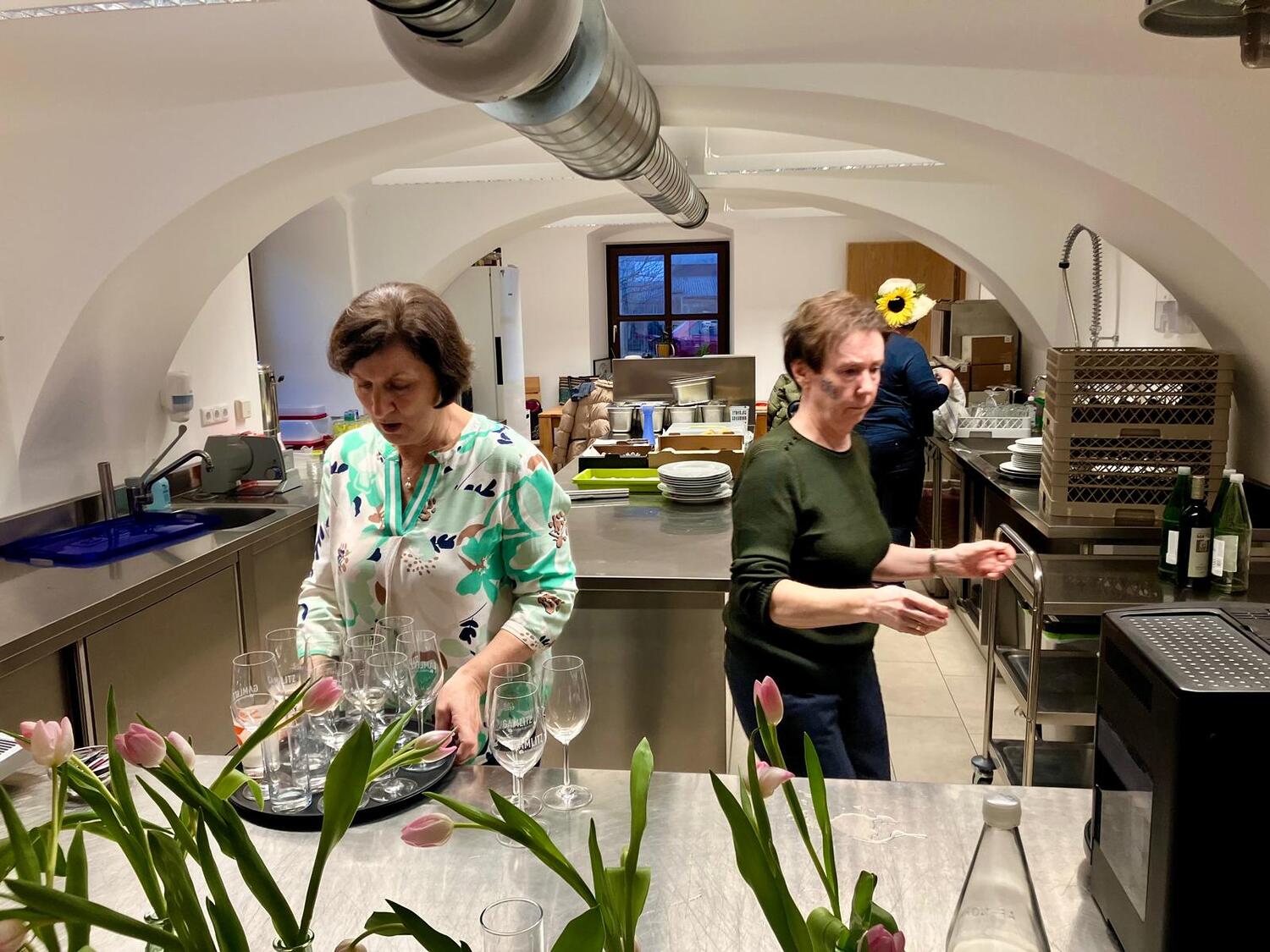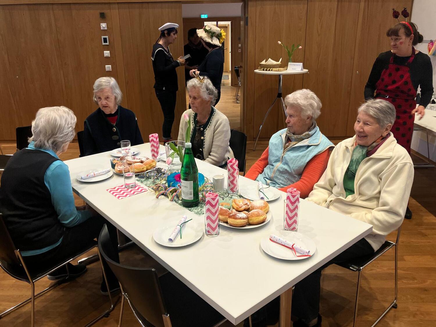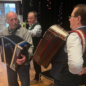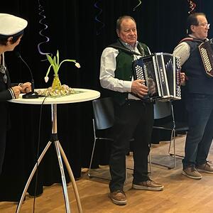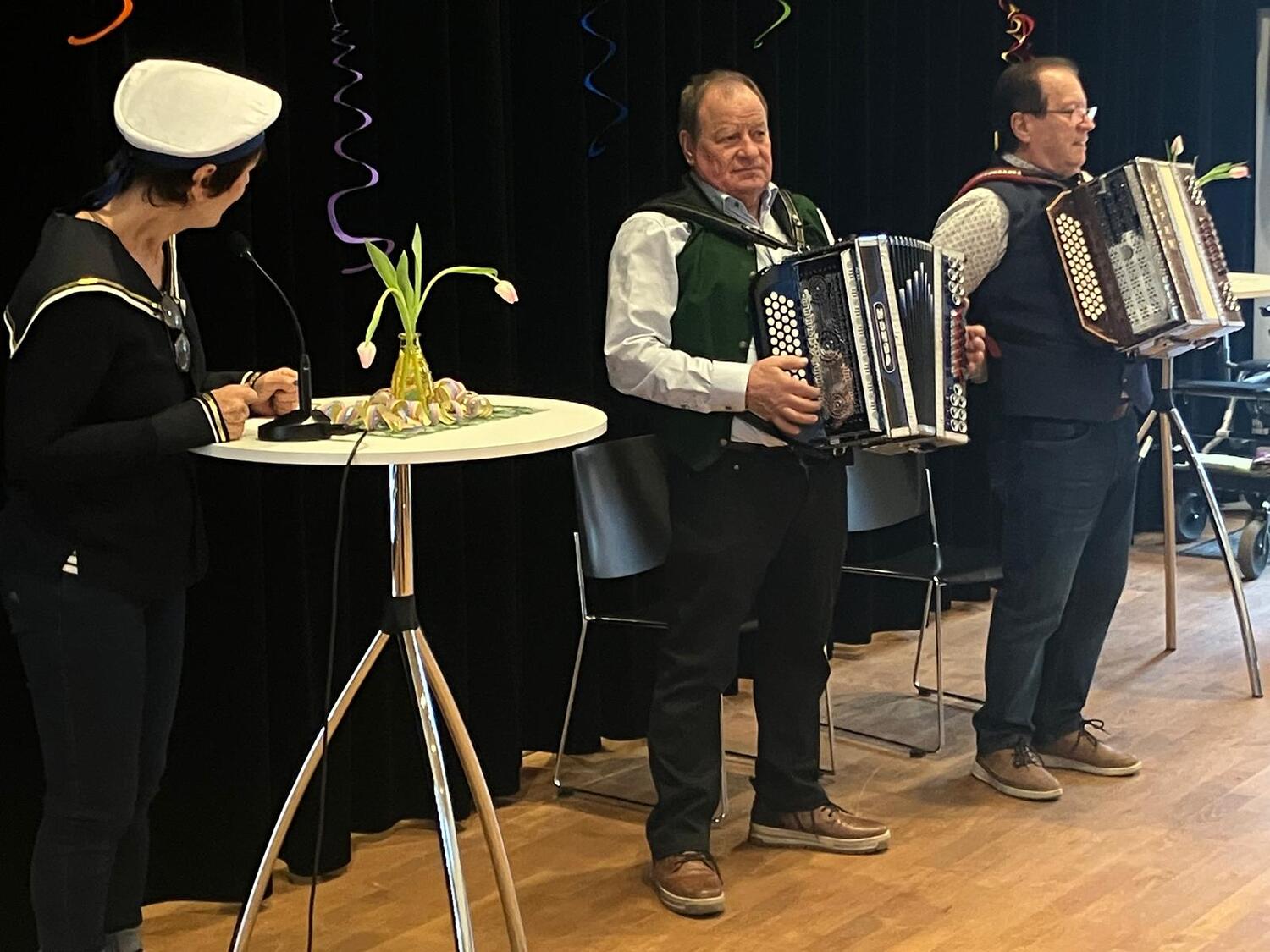Bei Krapfen, Kaffee und einem guten Glaserl Wein war die Stimmung fantastisch. Für die musikalische Umrahmung des Programms, sowie für Tanzmusik sorgten Mori Hans und Karl Tschernko auf ihrer Steirischen. Bei Schunkelliedern und steirischen Gesängen machten die Besucher:innen fleißig mit.