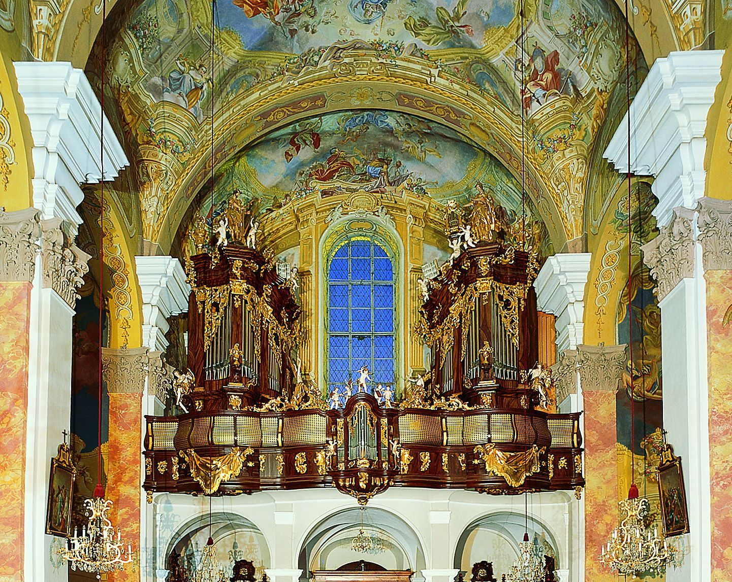 Der Hochaltar wurde von Lukas von Schramm geplant und bildet mit seinen mächtigen Marmorsäulen und dem großartigen Aufbau einen prächtigen Rahmen zur Altarmitte mit der Gnadenstatue.