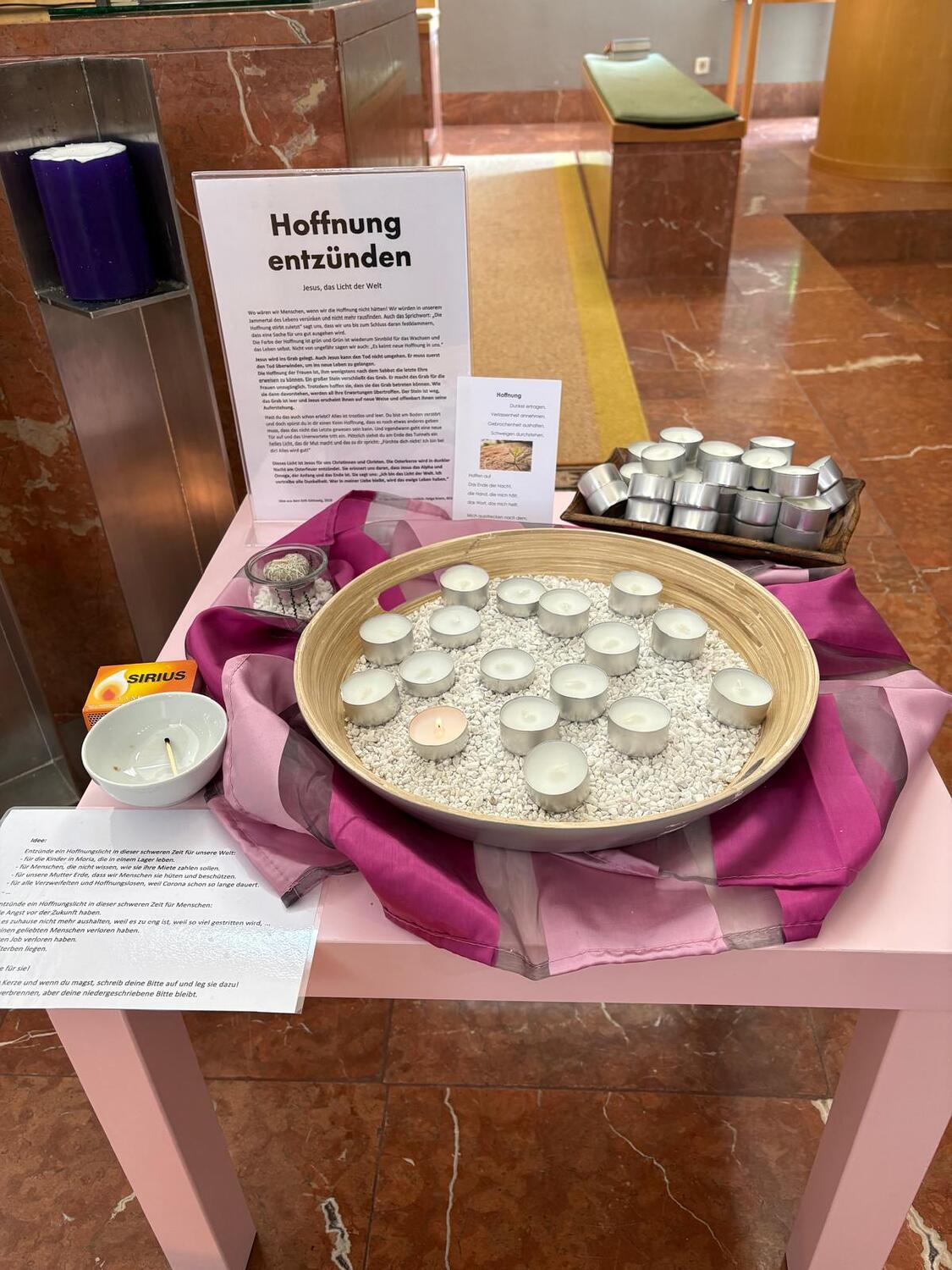 Die Fastenstationen laden in der Fastenzeit Groß und Klein dazu ein am „Weg der Erinnerung“ teilzunehmen. Sich über „Meine Höhenflüge“ zu erfreuen, aber auch unsere Klagen an der „Klagemauer“ zu hinterlegen. Beim „See der Tränen“ stehen zu bleiben oder ein Licht leuchten lassen bei „Hoffnung entzünden“.