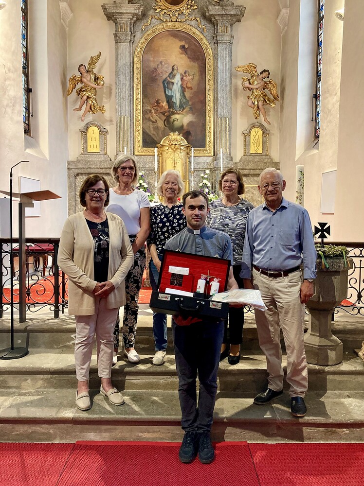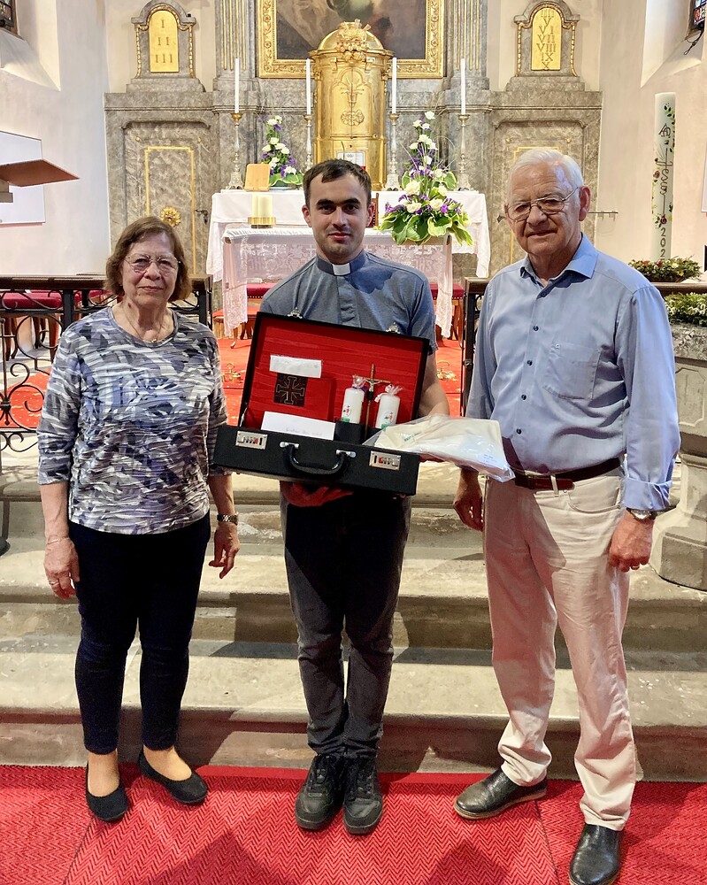 Als Zeichen der Dankbarkeit und in Verbundenheit mit der Weltkirche haben die Sozialkreise Lieboch und Tobelbad Diakon Andrei Marcelin Bolog eine Albe sowie einen Messkoffer überreicht. Zur Feier seiner Priesterweihe und Primiz wurde ihm außerdem ein Geldgeschenk mit auf den Weg gegeben.