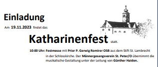 Einladung zum Katharinenfest am 19.11.2023 in Weinburg!