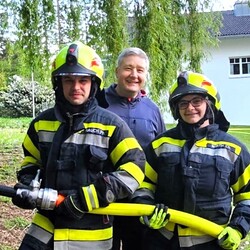 Freiwillige Feuerwehr Tobelbad-Haselsdorf bei der Übung am Kirchplatz